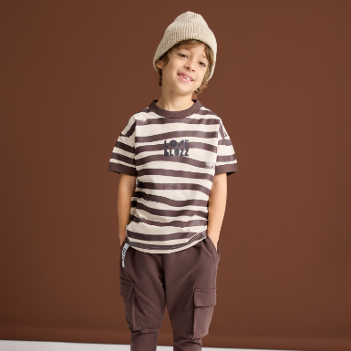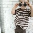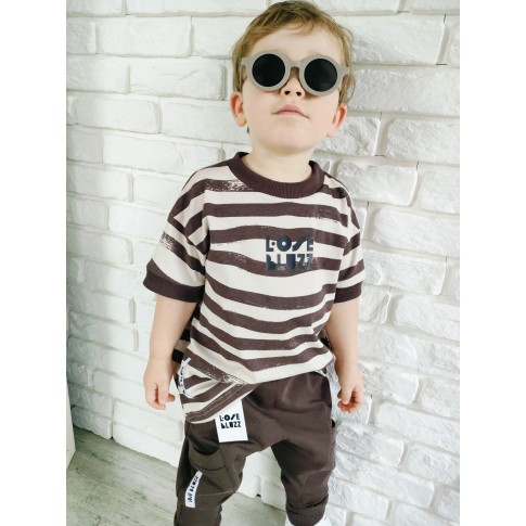 T-Shirt LOOSE BLUZZ Paski Brązowe